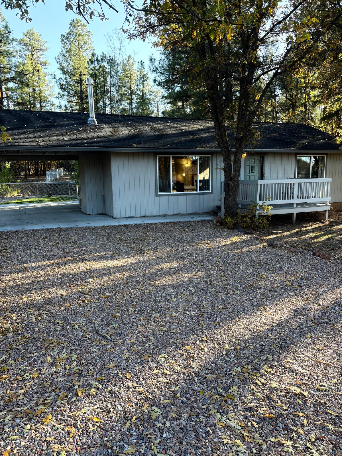 This rental is right between Showlow and Pinetop. The woodsy cabin is perfect for an individual, couple as well as small group or family. The cabin is pet friendly. The upstairs loft is a hit with children and additional sleepers. Guests may access the clubhouse and it’s immenities. The two seating areas inside as well as outdoor firepit allow for diversity of gathering. The community is quiet, friendly and highly wooded. Smart tvs and starlink Wi-Fi, and Firepit. Central ac and heating.