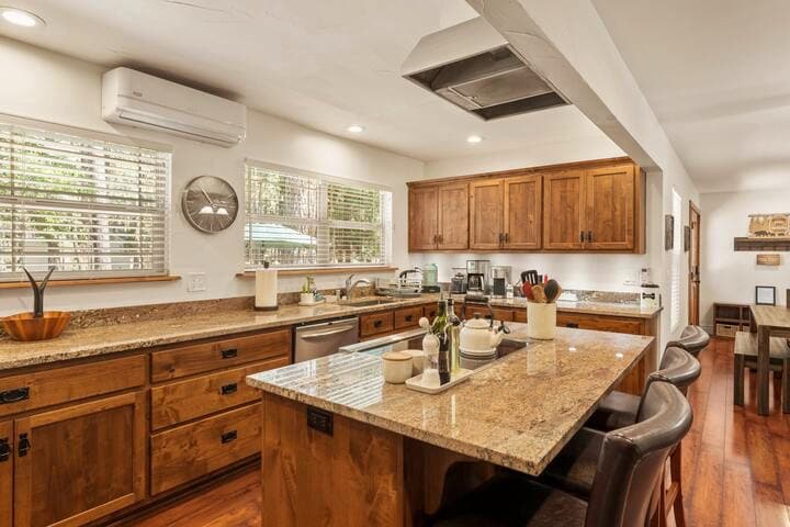 A las familias, ciclistas de montaña y golfistas les encantará esta moderna casa con mucho espacio y un sinfín de opciones de entretenimiento. Aire acondicionado. A poca distancia a pie de la ciudad. Barrio tranquilo. Enorme sala de juegos con TV de 85 pulgadas, mesa de billar, hockey de aire, ping pong, dardos, Nintendo 64, Nintendo Wii, numerosas máquinas recreativas, baloncesto Hot Shot y décadas de recuerdos deportivos. Cocina totalmente equipada. Barbacoa. Ducha de vapor y jacuzzi. Aro de baloncesto al aire libre. Amplia terraza. Wifi de alta velocidad. Lavandería. Televisión por cable. Servicios para niños.