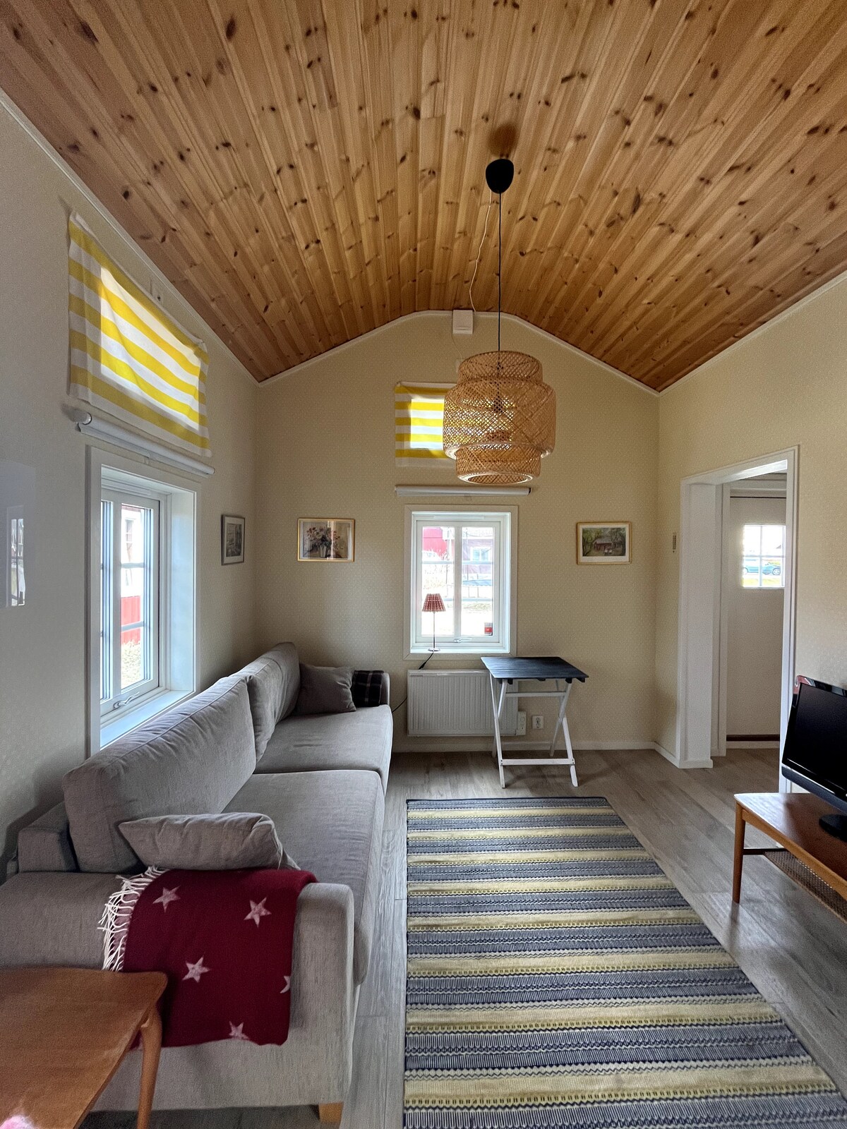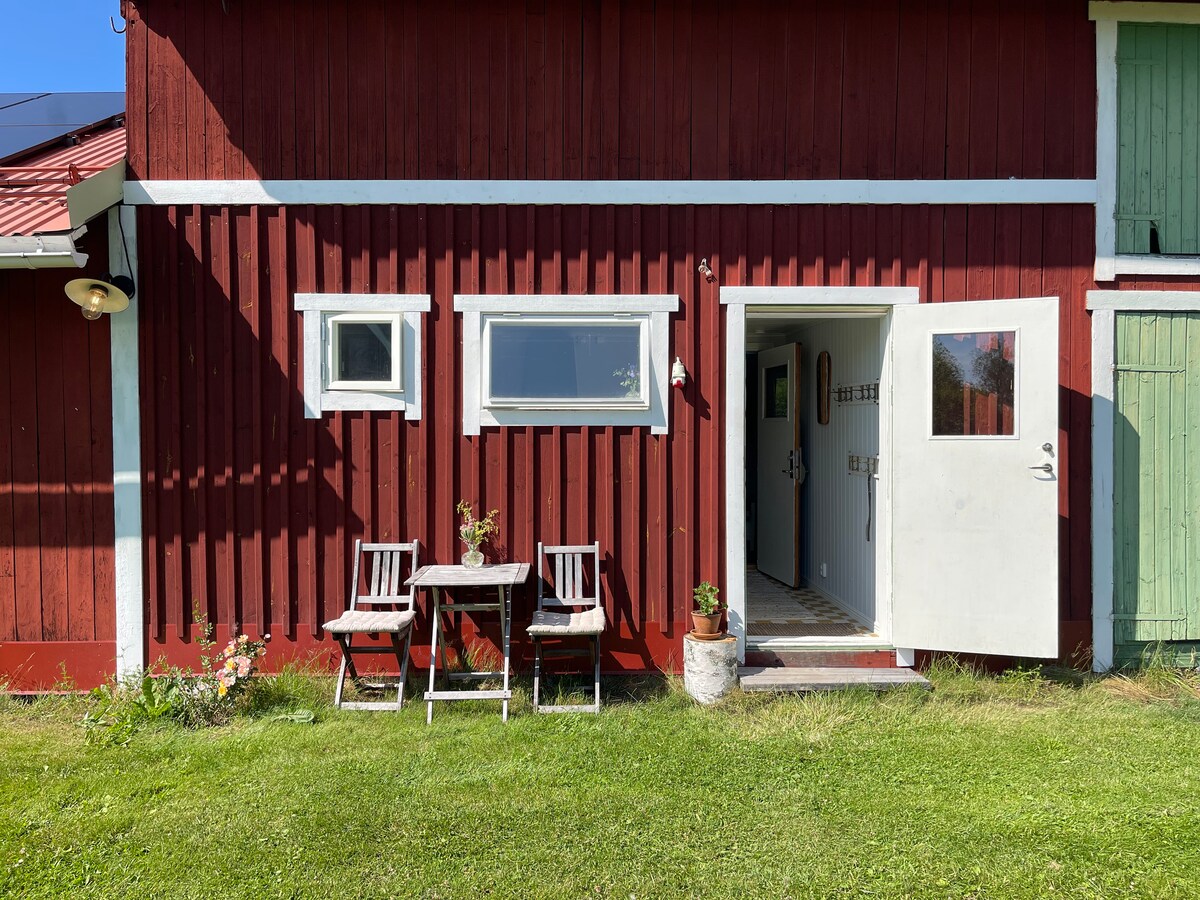 Cabaña de madera con patio y parrilla en una gran parcela compartida en un entorno tranquilo. Cerca de la naturaleza y de zonas de baño. La cabaña tiene una sala de estar con chimenea (leña gratis), wifi y TV, así como una cama (140 cm) y un sofá cama (130 cm). Cocina independiente con fogones, microondas y cafetera. Baño con ducha y WC químico. Acceso a la sauna con sala de relajación previo acuerdo y pago de 100 SEK. Se pueden alquilar sábanas y toallas por 150 SEK/persona. La limpieza final no está incluida, se puede reservar por 500 coronas. A 5 minutos en coche del centro comercial.