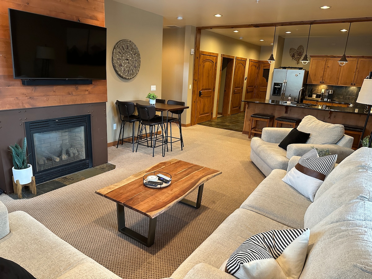 Este apartamento ofrece un dormitorio tamaño king y un sofá cama con un colchón de espuma viscoelástica, un baño completo, cocina completa, lavadora/secadora apiladas, mesa de comedor para 6 personas y asientos en la encimera, y patio. Con actualizaciones recientes, como pintura/alfombra nueva en todo el apartamento, muebles nuevos y cortinas opacas, este apartamento te hará sentir como en casa. Hay zonas para guardar tus bicicletas y tus esquís para que puedas disfrutar de todo lo que Silver Mountain Resort tiene para ofrecer. Permiso 19-09