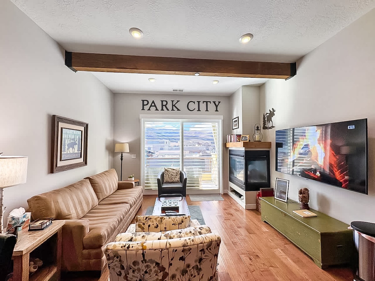 ¡Limpio brillante y carga de vehículos eléctricos! Esta unidad cuenta con un televisor inteligente de 65 pulgadas y televisión por satélite directa con una cama tamaño king para verla. Ubicado justo al lado del servicio de traslado gratuito de Park City para llevarte por toda la ciudad. Escapada de fin de semana perfecta para parejas y perfecta para vagabundos de esquí. Acceso al jacuzzi durante todo el año. Estacionamiento gratuito. ¡A poca distancia a pie de muchos restaurantes y del sendero pavimentado/ciclismo favorito de la zona justo detrás de nuestra unidad! ¡Este camino te lleva a todo en la histórica Park City!