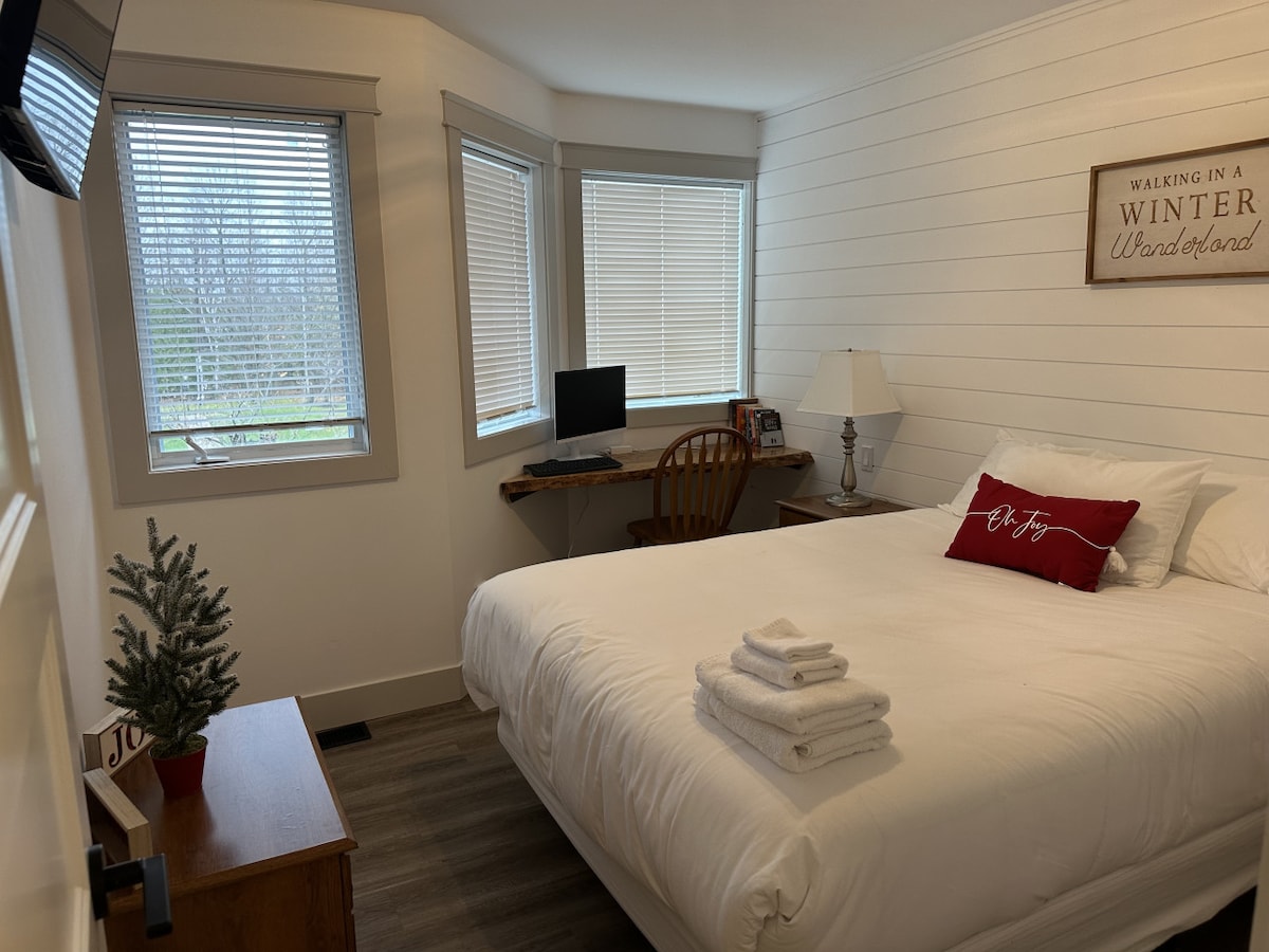 Olvídate de las preocupaciones en este gran alojamiento en Highland Estates: ¡es un oasis de tranquilidad! Obtienes una suite de diseño completa perfecta para parejas, equipada con una cama tamaño king y un jacuzzi para los románticos. Prepara tus propias comidas en la cocina totalmente equipada con microondas y estufa eléctrica. Accede a tus cuentas favoritas de televisión en streaming como Netflix, Prime y Disney+. Cerca de Vetta Spa y de las principales colinas de esquí; literalmente el mejor refugio en Oro-Medonte. ¡Reserva con nosotros hoy mismo! Ten en cuenta que la chimenea no funciona.