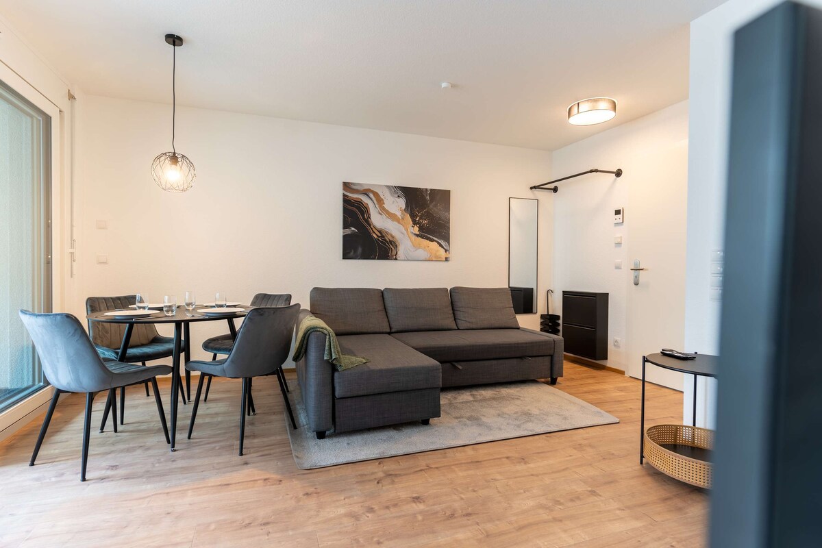 Moderne Wohnung im Herzen der Böblinger Innenstadt für bis zu 4 Personen. Dich erwartet ein Schlafzimmer mit Doppelbett, ein helles Wohnzimmer mit Schlafsofa, Smart-TV und eine voll ausgestattete Küche. Kostenloses WLAN steht zur Verfügung. Im modernen Bad findest du Dusche, Handtücher und Pflegeprodukte. Ein kostenloser Parkplatz im Parkhaus ist inklusive. Das Highlight: Direkt vor deiner Türe findest du das Einkaufszentrum "Mercaden"
