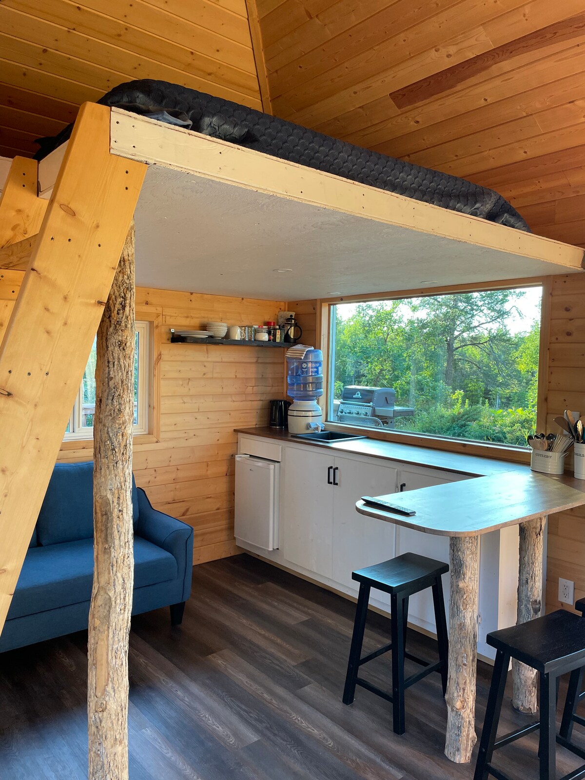 Olvídate de tus preocupaciones en esta acogedora cabaña frente al mar a solo 10 minutos de Kenora. Disfruta de un refugio privado con impresionantes vistas al lago, comodidades modernas y fácil acceso a los servicios. Relájate en la espaciosa terraza con tu café por la mañana o aprovecha el acceso privado al lago. En el interior, disfruta de una cocina bien equipada, wifi de alta velocidad y una acogedora sala de estar. Los aspectos más destacados al aire libre incluyen una barbacoa, una chimenea y asientos para observar las estrellas. ¡Un escape perfecto de una vida ajetreada!