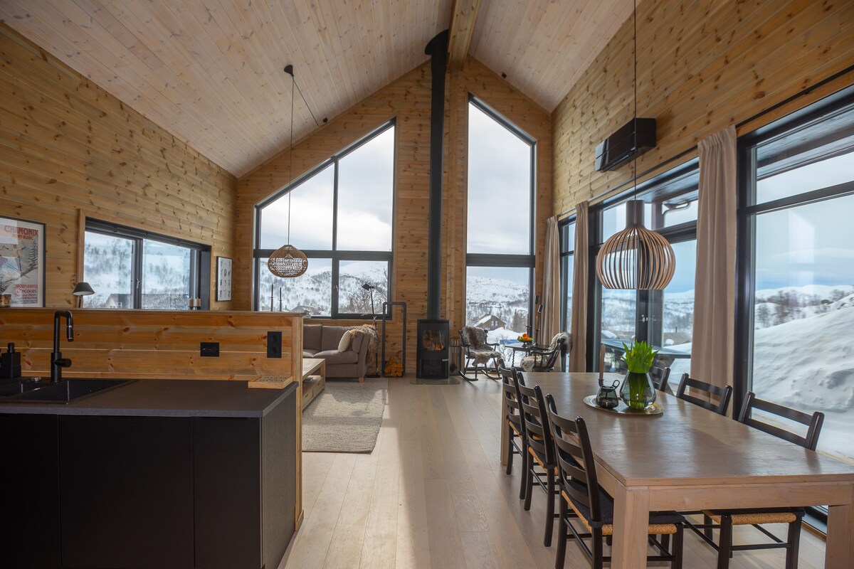 La cabaña está dividida verticalmente y se completó durante el invierno de 2021. La ubicación está por encima del hotel de alta montaña Sirdal en la rama de montaña Fidjeland. La vista desde la zona ¡tiene que tener experiencia! Durante el verano, puedes ponerte los zapatos de montaña y subir directamente a Hilleknuten o al valle de Jogledalen. O sube al coche y camina hasta Kjerag, visita las playas alrededor de Suleskar o siéntate en el castillo y disfruta de las vistas. La cabaña es adecuada para familias u otros adultos que quieran una estancia tranquila sin fiesta