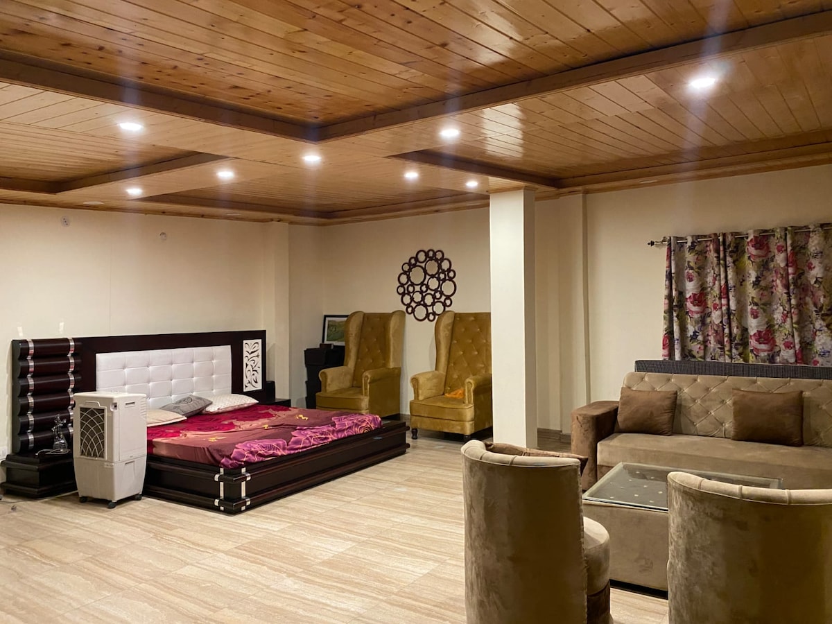 - 2 BHK - Desayuno incluido. - Vista del valle - Cerca de Mall Road. - Estufa Lpg - Conectado a la autopista nacional de 4 carriles. - Estacionamiento en la casa. - Cocina totalmente equipada - Dos dormitorios de lujo con 2 baños. - Microondas. - Jacuzzi (de pago). - Vapor y sauna (de pago) - Spa (de pago) - Gimnasio (de pago) - Teatro (de pago) - Fogata con barbacoa (de pago) - Entrega a paso de comestibles en la puerta - Lcd inteligente con Ott - Pantuflas de baño. - Servicio Zomato disponible - Se admiten mascotas.