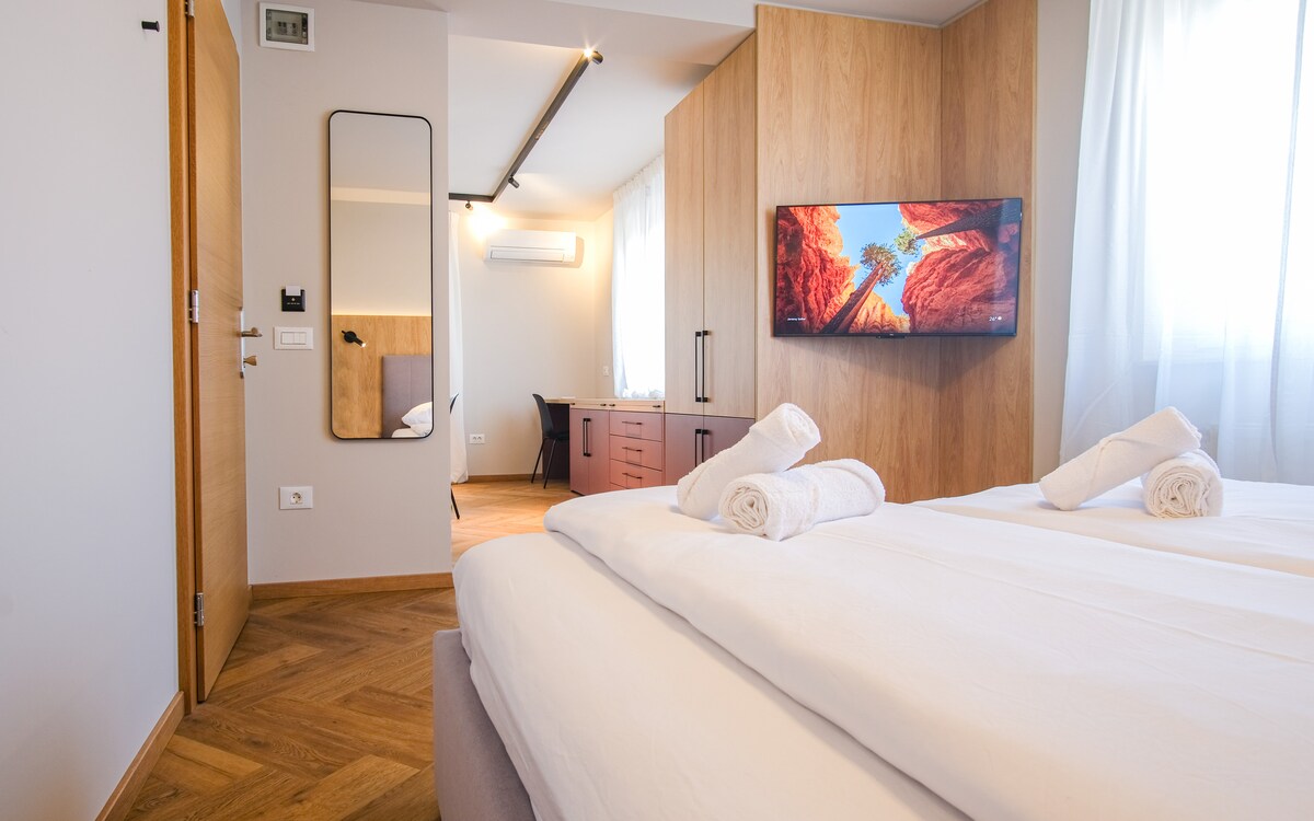 Riverside Apartment Ljubljana is a newly renovated apartment situated along the river in the heart of Ljubljana's old town, boasting views of the Ljubljanica river and Ljubljana Castle. After a restful night in our super-king Marriott bed, you can immediately start exploring the old town's landmarks, cafes and restaurants, or prepare a breakfast in our fully equipped kitchen. We are in the pedestrian zone but if you travel by car we offer a free parking in the residential garage for one car.