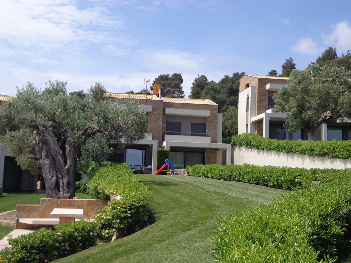 Una experiencia única en el corazón de Sithonia, entre los picos del Olimpo y Athos. En una propiedad de 15 acres con un olivar familiar de 200 años de antigüedad y acceso exclusivo a un cañón de belleza salvaje, construimos una residencia única en toda Grecia enteramente de piedras fluviales y marinas, rodeada por el azul del mar y el verde del bosque. Está a 5 minutos de las playas más famosas de Sithonia, Lagomandra, Elia, Spathies, Kalogria, Kovgiou.