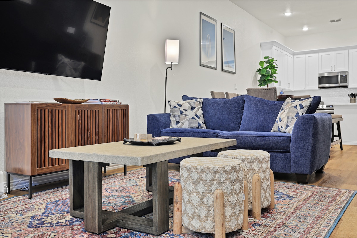 Esta casa moderna personalizada fue construida en 2018 y tiene casi 40 fotografías de artistas locales. Cada foto tiene una descripción escrita por el artista y ofrece una experiencia verdaderamente única para aquellos que buscan una estancia con encanto y calidad hotelera. El plano de planta es abierto y la decoración es minimalista, sin desorden, pero tiene todo lo necesario. Ideal para viajeros de negocios y familias con oficina, cochecito, silla alta y asiento de coche. Televisores inteligentes en todos los dormitorios, internet es de 1 Gbps.