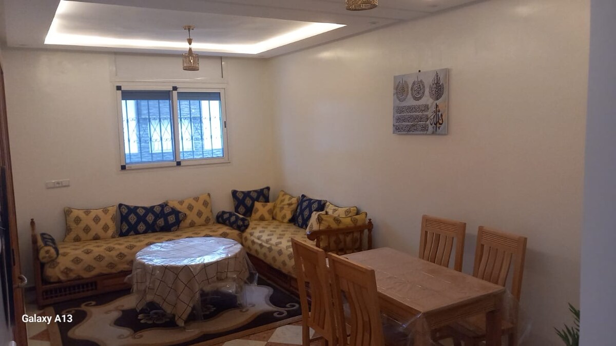 Bienvenido a nuestro alojamiento familiar elegante y cómodo. Con sus 2 dormitorios, una sala de estar y una sala de estar, la cocina bien equipada y el baño con ducha. Disfrute de la proximidad al zoológico de Témara, la playa, el bosque, así como restaurantes, un McDonald's, el supermercado Marjane y el supermercado BIM a un minuto. La ciudad capital de Rabat está a 15 minutos en coche, y la estación de tren está a pocos minutos. y aparcamiento en el lugar.