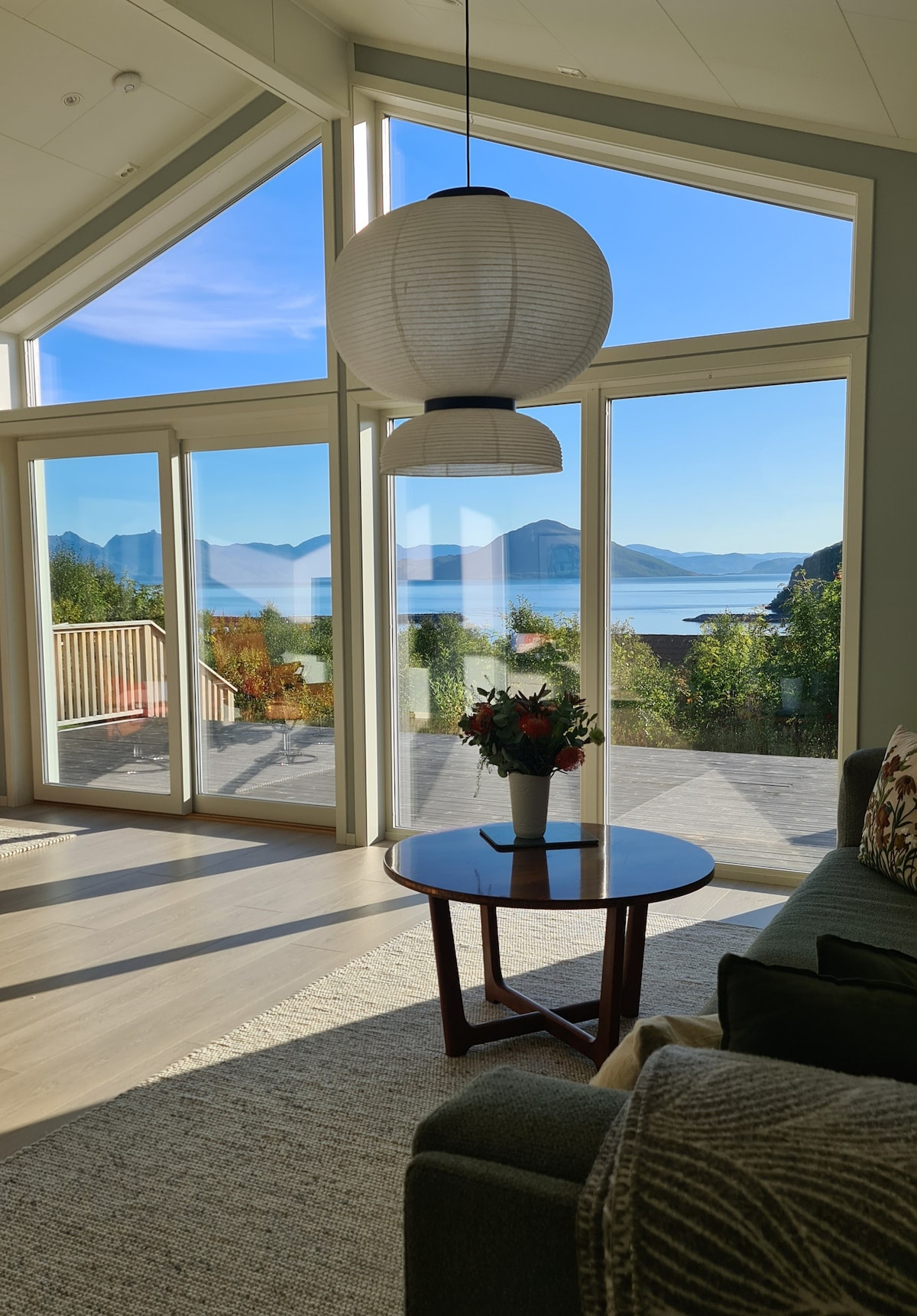 Gran cabaña con vistas a la montaña, al mar y a la aurora boreal