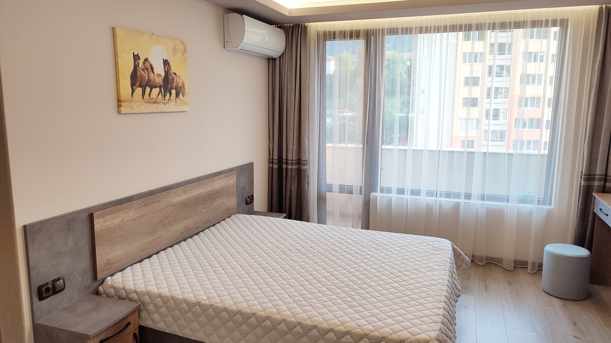 Дайте си почивка и се отпуснете в този спокоен, стилен и чисто нов апартамент където нашите гости ще се чувстват щастливи и комфортно. Добре дошли в новия ни апартамент! Нашето място е на последен пети етаж и предлага невероятна панорамна гледка и абсолютен комфорт за нашите гости.