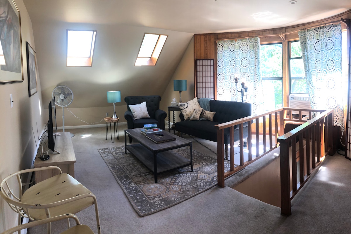 ¡Ven a compartir nuestro hogar único y peculiar! Entrada privada a todo el tercer piso, más de 85 metros cuadrados, con entrada privada. Te alojarás en el tercer piso de nuestra casa, construida en 1906 y llena de carácter. Los registros se perdieron hace años, por lo que no estamos seguros de cuáles de los rumores son ciertos: • ¿Se construyó la casa como pensión? • ¿Tal vez fue construida como un hospital para pacientes con tuberculosis? • ¿Podría la casa haber sido un burdel? ¡Cerca de Highland Square, el centro de la ciudad, restaurantes y mucho más!