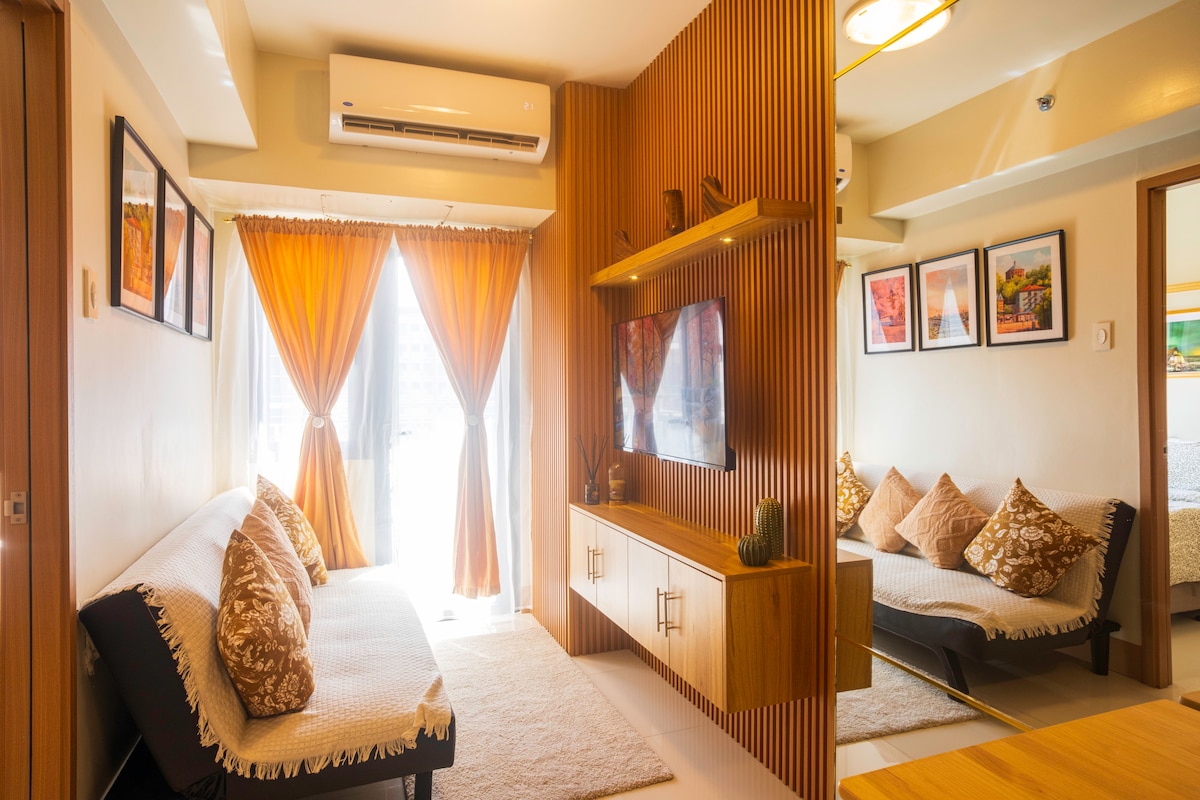 Bienvenido a nuestra unidad de 1 dormitorio de diseño minimalista con una increíble vista a la piscina. Relájate en la espaciosa sala de estar con nuestro televisor inteligente, cocina tus comidas en nuestra cocina totalmente equipada para cenar o simplemente disfruta de momentos mirando por el balcón. Pero lo más importante es que duermas profundamente en nuestras cómodas camas. Situado a poca distancia a pie de Ikea, del Centro de Convenciones SMX, del MOA Arena y de los alrededores del centro comercial Mall of Asia. Disfruta de los restaurantes, cafeterías y tiendas de comestibles cercanos, justo a las afueras del apartamento.