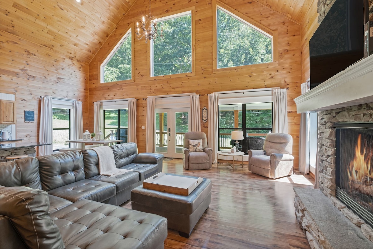 Puedes sumergirte en la tranquilidad en esta moderna cabaña con jacuzzi, chimenea interior y espacio al aire libre. El río Caney Fork limita con la granja de 63 acres, que conecta directamente con más de 60 000 acres de naturaleza protegida, donde tienes acceso gratuito a kilómetros de rutas de senderismo, cascadas mágicas, granjas históricas e impresionantes cuevas. En la cabaña, puedes escuchar los sonidos de la naturaleza mientras disfrutas de las vistas panorámicas del valle de Big Bottom y las vistas a las montañas del Parque Estatal del Golfo de Scott.