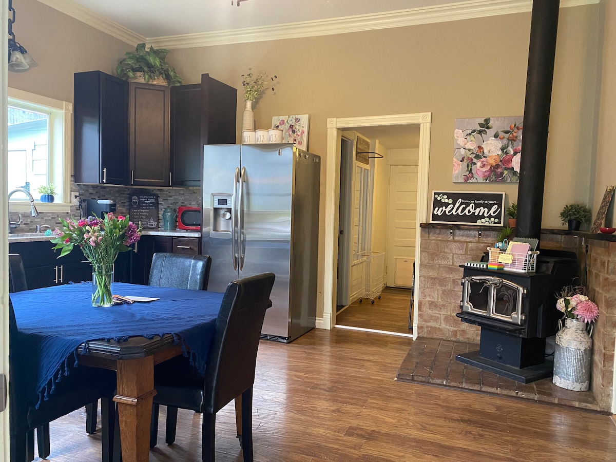 Construida en 1890, esta casa histórica ha sido cuidadosamente actualizada con todas las comodidades modernas. Los 3 dormitorios cuentan con camas tamaño queen. El dormitorio principal está en la planta baja y hay dos dormitorios espaciosos adicionales arriba. Cocina actualizada y baño con ducha doble a ras de suelo. Acogedora sala de estar con internet de alta velocidad Xfinity para streaming y acceso a la web. Hermoso espacio al aire libre con luces, chimenea y asientos cómodos. ¡Ubicado en el sendero Centennial, a 2 manzanas del centro de Snohomish, con tiendas y restaurantes!
