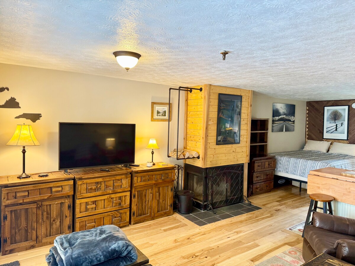 ¡Lo moderno se une al encanto del viejo mundo en este apartamento recién reformado de Highland House! ¡Disfruta de una unidad fabulosamente equipada con muchos detalles únicos de madera de granero! La cocina incluye nevera de tamaño completo, lavavajillas, microondas, tostadora, cafetera, placa de inducción y una mesa plegable para dos. La cama tamaño king de espuma viscoelástica es increíble y, a 14 pulgadas del suelo, tiene la altura perfecta para guardar el equipaje que no utilices.