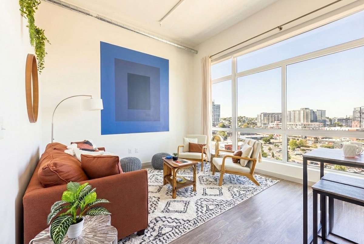 Os damos la bienvenida a nuestro apartamento esquinero en el corazón del centro de la ciudad. Disfruta de ventanas del suelo al techo, un balcón privado envolvente y un diseño abierto con espacio para relajarte. Tu comodidad es nuestra prioridad. Ofrecemos todos los servicios necesarios para que te sientas como en casa. ★ Hora de llegada: 3:00 p. m. ★ Salida: 10:00 a. m., SIN EXCEPCIONES. ★ Lee el anuncio completo a continuación para ver las preguntas frecuentes sobre el aparcamiento, el registro de entrada y salida y el espacio.