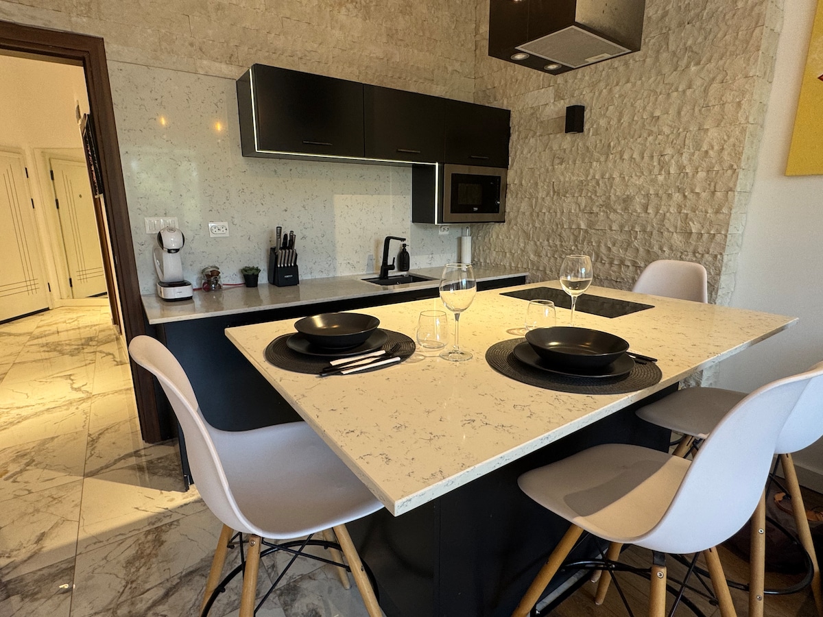 Newly furnished home The Blue Sky Penthouse. Centrally located in a new building close to metro stations. ★"One of the most fully equipped AirBnB places we have stayed in." FEATURED: ➤ Dedicated, top covered parking spot ➤ Quiet Bedroom and LUX Bathroom ➤ Furnished terrace - 75m2 in size ➤ 4K Smart TV 65 Inch and Sofa Bed ➤ Workspace with excellent Wi-Fi ➤ Well equipped kitchen ➤ Two Air Conditioners. Craving some bakery goods? You are in luck! There's a bakery located next to the entrance.