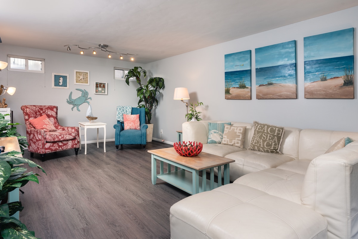 Bienvenido a un apartamento recién remodelado con vistas al mar a pocos pasos de la playa en North Coast Village. Todo es nuevo, desde los electrodomésticos de cocina de acero inoxidable con encimeras de cuarzo blanco hasta el hermoso baño con ducha a ras de suelo. La cocina tiene armarios nuevos y todo lo necesario para cocinar una comida casera si lo deseas. Hay una cafetera y se proporciona café. Se utilizó un tema de playa para decorar todo el apartamento que realmente te hace sentir como si estuvieras en el paraíso.