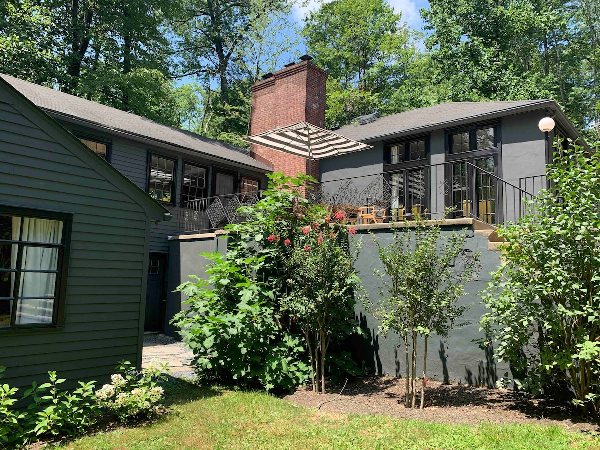 Acogedor apartamento/suite de dos dormitorios disponible para los fines de semana lejos de la ciudad. No hay cocina ni aire acondicionado. Solo dos dormitorios, sala de estar y baño (con bañera). Propiedad arbolada de 10 acres que se comparte con nuestro inquilino, que es un encantador estudiante de doctorado en Princeton.