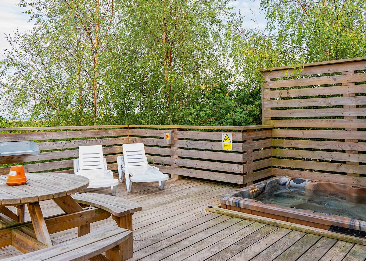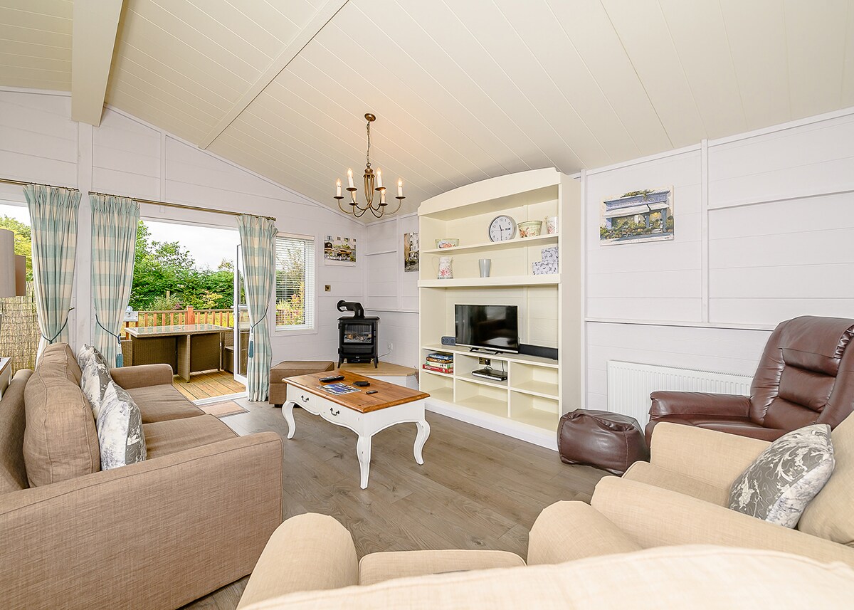 Un chalet encantador, ligero y espacioso en los niveles de Somerset; terminado a un alto nivel con su propia bañera de hidromasaje privada de leña en la terraza con vistas a los campos. Calefacción de gas y un quemador de leña. (ver las reglas de la casa para el uso del quemador de madera) NO SE PROPORCIONAN TOALLAS Los horarios de entrada y salida a veces pueden modificarse según sus necesidades . Pregunte al reservar . La ubicación es una milla de distancia de un pub y 1,5 de un supermercado local. Está por una pista y muy aislado . No esperes en los suburbios. No se proporcionan TOALLAS.