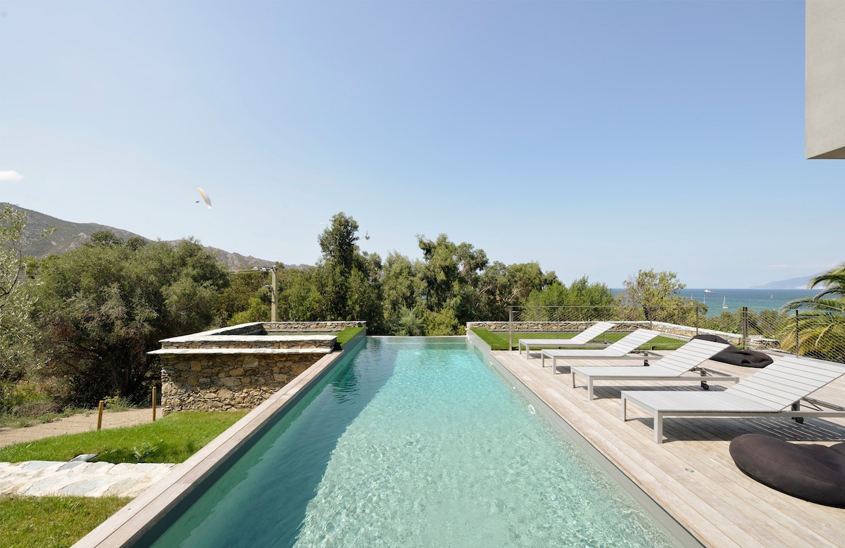 A dos pasos de los pueblos más bellos de Cap Corse, nuestra villa de prestigio con una decoración cuidada, le permitirá pasar una agradable estancia. Se beneficiará de todas las comodidades (3 dormitorios, 2 baños, cocina interior y cocina de verano, comedor, terraza equipada, piscina infinita, cancha de petanca, etc.) con unas vistas que quitan el aliento. Reservas de un mínimo de 4 noches fuera de temporada y 7 noches en temporada alta