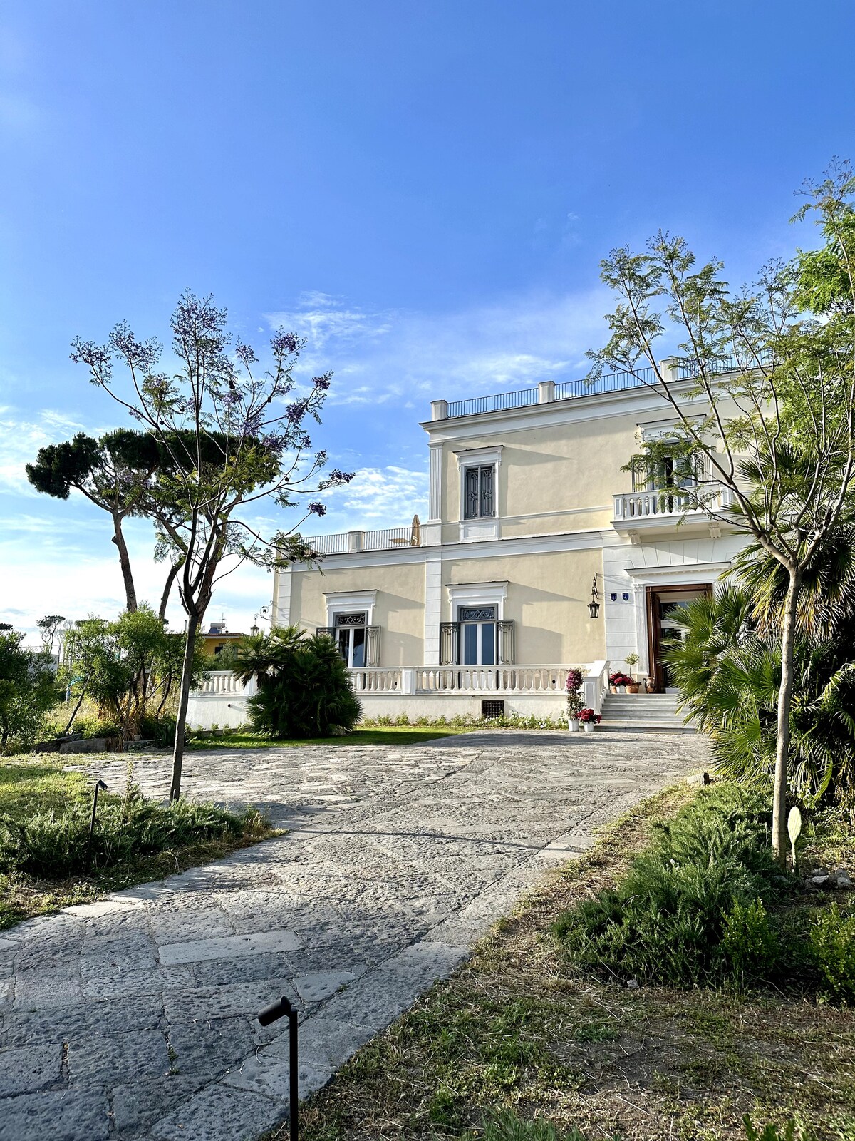 La Suite Familiar Ludovico, con dos dormitorios comunicados y dos baños, es un refugio de elegancia e inspiración. Suelos de Vietri, tonos suaves y detalles naturales como higos chumbos y cerezos crean una atmósfera sofisticada. Las amplias terrazas bañan el espacio de luz natural y ofrecen vistas impresionantes al Vesubio y al pino centenario.