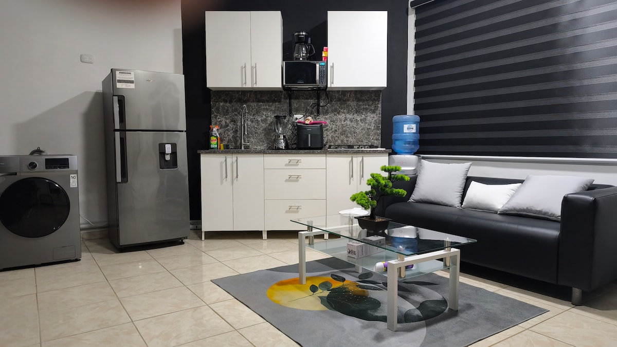 ¡Te damos la bienvenida a nuestro sereno retiro Sousa, Puerta Plata! Nuestro Airbnb de 27 metros cuadrados combina comodidad y funcionalidad. Cuenta con una cocina versátil, una cama elevada con almacenamiento y un balcón de doble propósito. Los tonos dorados y negros resaltan la cocina, con una barra de desayuno personalizada. Los centros inteligentes, el arte local y un centro multimedia con estante flotante añaden toques personalizados. Los tonos blanco, negro y verde crean un moderno oasis tropical. Tu escapada a Sousa comienza aquí.