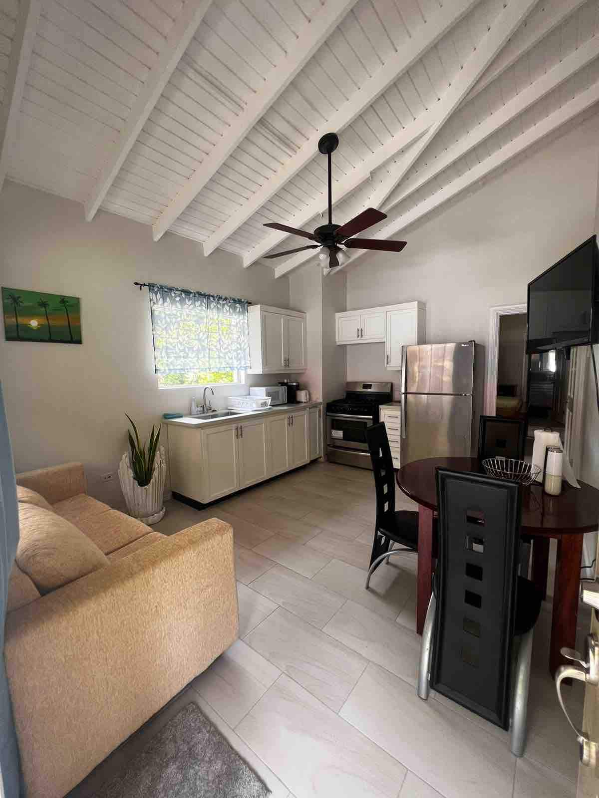 Escape to this tranquil studio, surrounded by lush greenery and designed with wood furnishings.The space is thoughtfully laid out for comfort, offering a cozy sleeping area , a functional kitchenette. Guests also have access to a refreshing shared pool. Perfect for cooling off after a day of exploring,whether you're here for a short getaway or a longer stay, this studio combines nature, comfort in one inviting retreat. This studio is located 10-15mins by Car from Beaches &Waterfalls in Soufriere