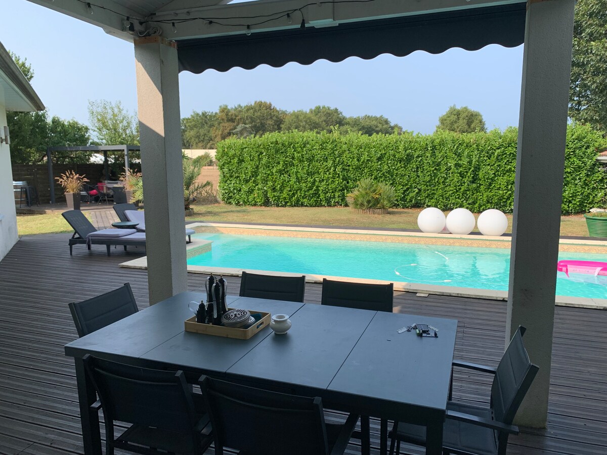 Casa nueva de 90 m2, 8 camas arriba, 1 baño en la planta baja y 1 cuarto de baño en el dormitorio principal, 2 aseos TV+WI-fi+Netflix, cafetera de grano A 20 minutos de Burdeos, estadio Matmut, vinexpo y a 45 minutos de las playas y en la carretera de los castillos del Médoc En medio de los viñedos en 1 hectárea de jardín Barbacoa tradicional + plancha y piscina 10x5 m compartida con los propietarios si están presentes. El spa/jacuzzi estará reservado para usted. A 200 metros a pie del antiguo pueblo de Ludon-Médoc y de todos sus comercios