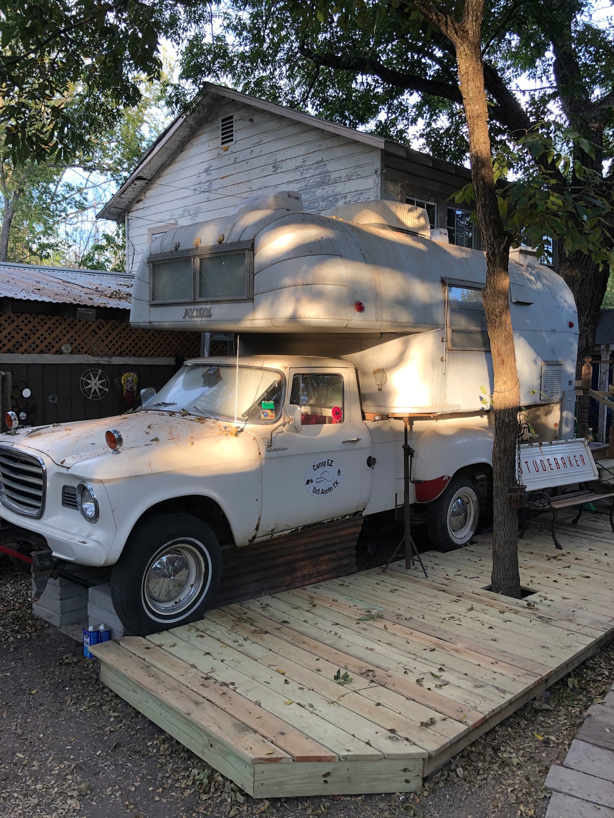 Mencionado como uno de los mejores Airbnb de Austin por Architectural Digest. Remolque Spartan vintage recién remodelado con baño privado adjunto (NO compartido) en un terreno boscoso y aislado de 3,5 acres en el sur de Austin. Terraza privada, chimenea, cama tamaño king, wifi rápido y piscina privada de tanque de almacenamiento (marzo-octubre). Echa un vistazo a nuestras otras unidades desde nuestra página de perfil de Airbnb. Música en vivo al aire libre y camiones de comida al lado. A solo 10 millas del centro de ATX.