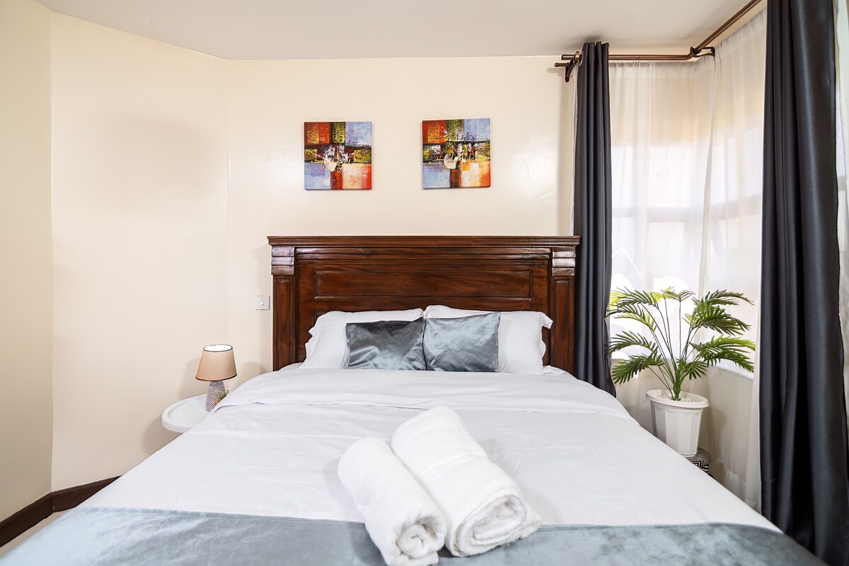 Este espacio cuidadosamente diseñado cerca de Nextgen Mall combina comodidad con conveniencia. A pocos minutos de JKIA, Nairobi CBD, el aeropuerto de Wilson, el parque nacional de Nairobi y el SGR, es el lugar perfecto para tu estancia. Además, podrás disfrutar de la proximidad a servicios esenciales como bancos, hoteles y hospitales. La propiedad cuenta con un gimnasio bien equipado, wifi de alta velocidad, aparcamiento gratuito y piscina. Relájate y desconecta en este refugio tranquilo y seguro diseñado para tu comodidad y tranquilidad.
