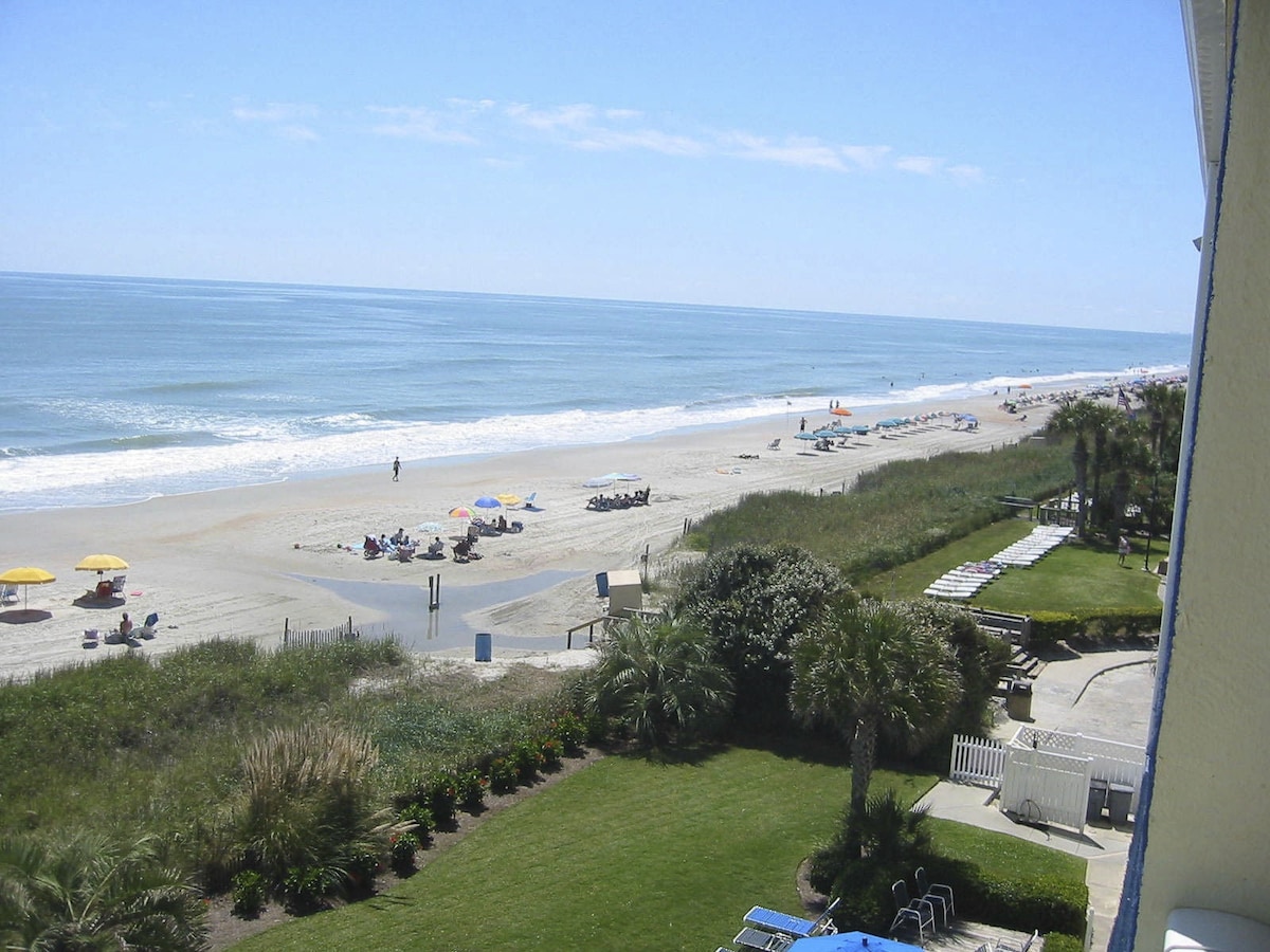 Una escapada a la costa atlántica. Los juegos de sol, la arena blanca y el paseo marítimo son difíciles de no amar. ¡Nuestra unidad tiene una excelente ubicación! Un rápido paseo de dos minutos te hará sumergirte en el océano o refrescándote en nuestra piscina privada frente al mar. De vuelta en el centro vacacional, puedes flotar por nuestros relajantes ríos perezosos, deslizarte por toboganes gigantes, relajarte en la exuberante piscina de la laguna o tomar una bebida junto a la piscina. Luego, observa un hermoso atardecer en South Carolina Beach.