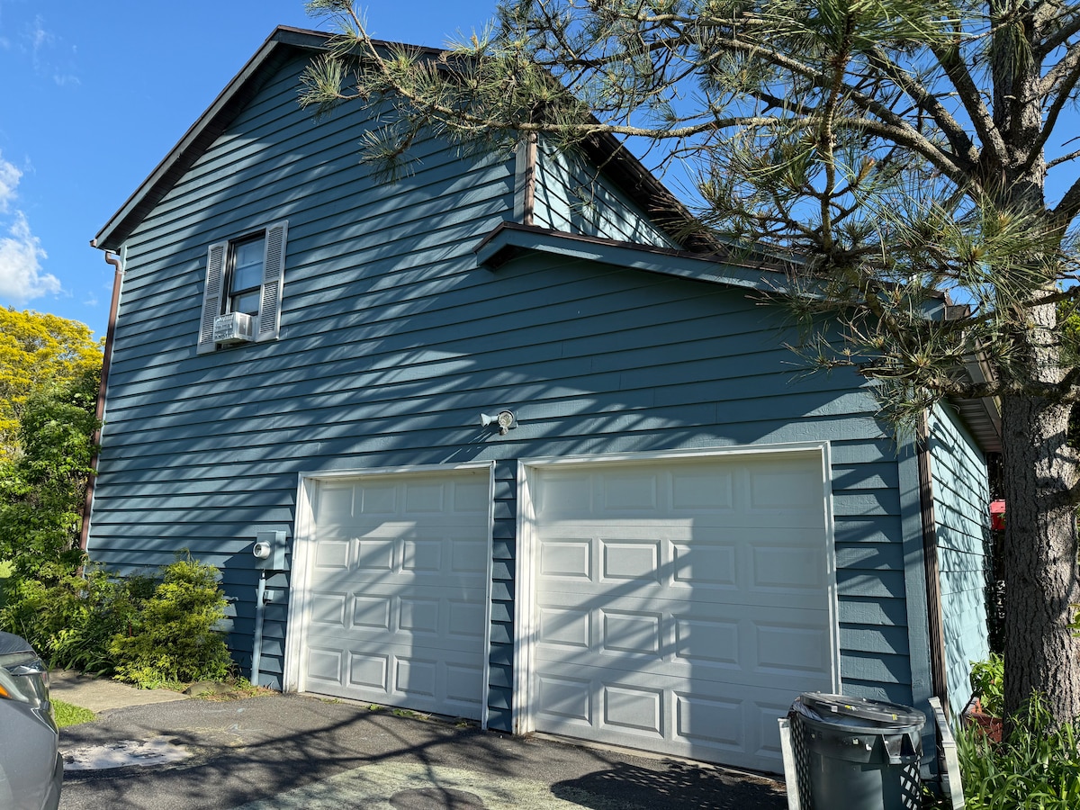 CNN nombró a Ithaca la mejor ciudad de Estados Unidos para visitar en 2025. Ya sea que te atraigan las cascadas, las bodegas o el cálido espíritu comunitario, nuestro moderno espacio espera tu visita. Tu espacio es soleado y tranquilo con vistas. Cerca de Ithaca College, Cornell, el centro de Commons, el lago Cayuga, senderos, bodegas y cervecerías. A dos millas de IC, 1 milla más a Commons y al pie del campus de Cornell. ¡Tu pareja puede cerrar la puerta del dormitorio para descansar mientras tú disfrutas de tu patio o sofá viendo la televisión!
