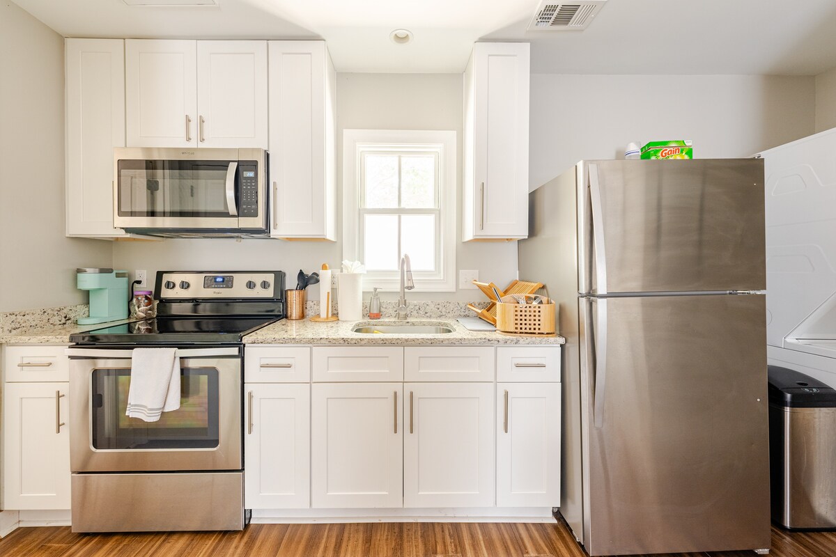 Encantador departamento de 1 dormitorio en un hermoso vecindario al que se puede ir caminando, justo al sur de Forsyth Park, y repleto de boutiques eclécticas, restaurantes favoritos de los amantes de la gastronomía y bares de moda. Bicicletas gratuitas para ayudarle a explorar, y paradas cercanas del servicio de transporte gratuito DOT. Ubicados en la popular zona de Thomas Square / Starland, estamos cerca de Forsyth Park (0,5 millas) y del Distrito Histórico (aprox. 1 milla). Tybee Beach se encuentra a unos 25 minutos en automóvil. Después de explorar, regrese a su hogar lejos de casa, a un jardín tranquilo y apartado de todo.