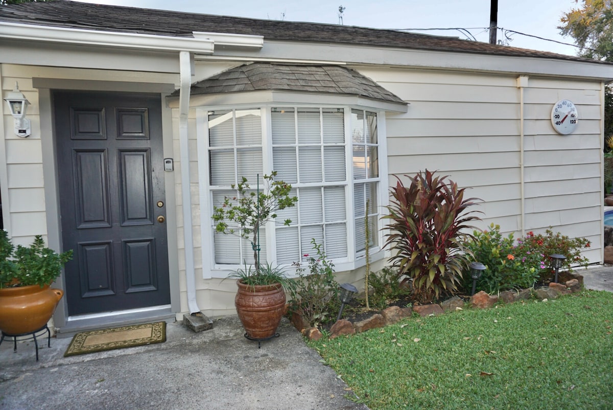 Nestled behind the 1920's bungalow, this charming first floor Studio provides a private entry way for your convenience. Experience Houston's Historic Heights neighborhood in this cozy and bright studio filled with all the amenities you need for a comfortable stay. This thoughtfully decorated space is furnished with mid-century modern pieces throughout and is close to many popular cafes, shops, bars and restaurants. Downtown, Montrose, and Midtown are only about 5-10 minutes away.
