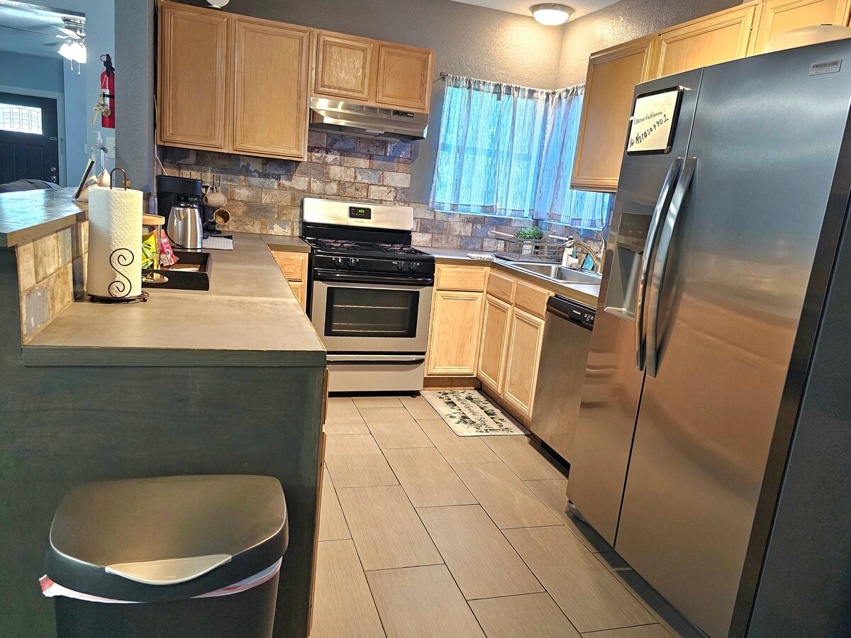 Welcome to our cozy and private 1-bedroom, 1-bathroom guest house, perfect for couples or solo travelers looking to explore Houston! Located 10-15 minutes from Hobby airport, the Texas Medical Center, Downtown, and the NRG stadium, you’ll have easy access to the city. This space offers a queen purple mattress for a comfortable night’s sleep, a fully-equipped kitchen with gas stove, fridge, and dishwasher, a washer and dryer, an ice machine, and a spacious and modern bathroom.