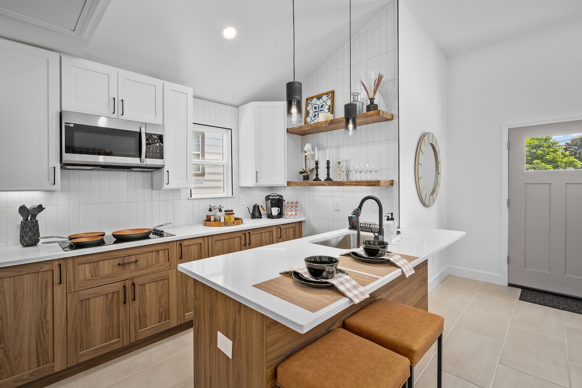 We invite you to stay at this stunning hidden gem inside the loop. Our ~470 SF modern contemporary tiny home is the perfect private oasis from home. Sitting on a 10,000 SF lot and features a long driveway perfect for large vehicles, small trailers, or RVs. Drive-up access for easy unloading, and vehicle monitoring. Renovated in the summer of 2022. This fully equipped home offers privacy with a touch of luxury designed with you in mind. We offer special set-ups for all occasions!