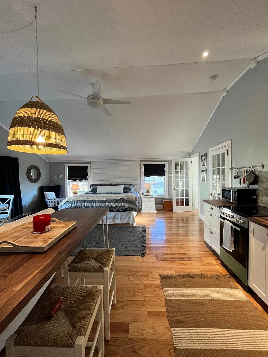 Raro estudio frente al mar de Portland ubicado en el corazón del histórico barrio de Stroudwater, espera a uno o dos huéspedes que buscan un escondite urbano. El estudio de nueva creación ocupa un granero de postes y vigas de 150 años de antigüedad situado a orillas de los ríos Stroudwater y Fore. Disfruta del café de la mañana en el columpio del río, medita con el sonido relajante de la cercana cascada o disfruta de tu copa de vino favorita bajo el espléndido enrejado de uvas del patio trasero.