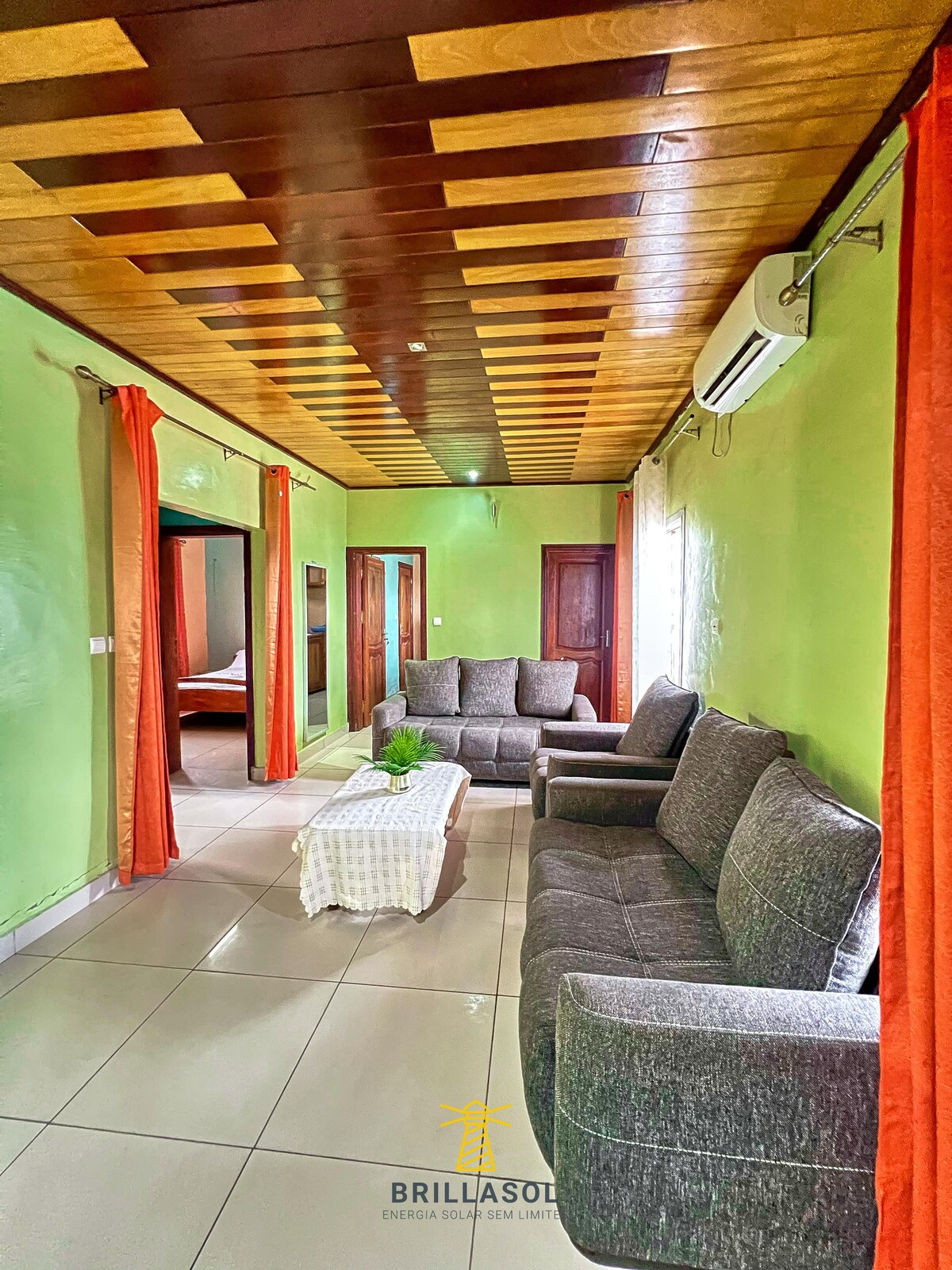 Este alojamiento tranquilo ofrece una estancia relajante para toda la familia, amigos y colegas. El apartamento está en un edificio de 3 apartamentos de 3 dormitorios y 3 baños cada uno que ofrece una gran zona verde para sus momentos de relajación o ceremonias. Tiene la opción de alquilar todo el edificio con su gran espacio al aire libre. Por lo tanto, todo el edificio ofrece 9 habitaciones y 9 duchas + el espacio exterior.