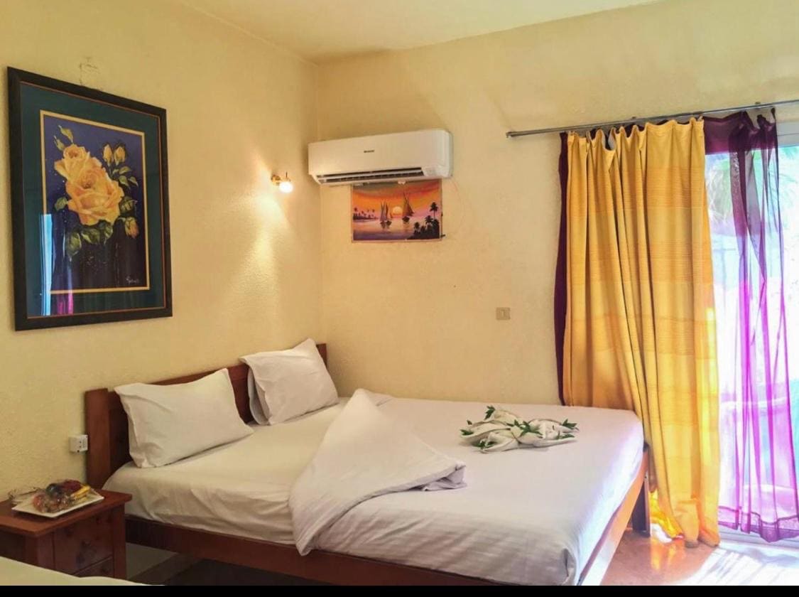 Habitación 50: habitación doble con acceso privado a la playa Una cómoda habitación doble con vistas tranquilas a la parte trasera y acceso directo a la zona de playa privada del hotel. Cuenta con dos camas individuales, aire acondicionado, mininevera, baño limpio con ducha, sábanas suaves y artículos de aseo personal. Una estadía sencilla y tranquila a pocos pasos del mar, ideal para viajeros que buscan comodidad y acceso a la playa a un precio excelente.