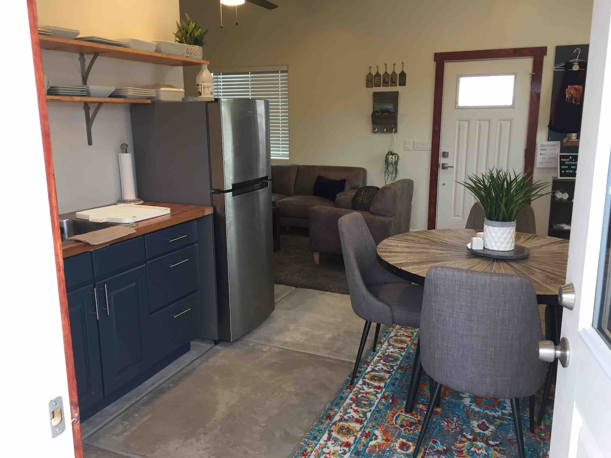 Perfecta para una escapada de fin de semana o una estancia larga, nuestra casita en el centro de la ciudad está totalmente equipada con todo lo necesario para disfrutar de todo lo que Tucson puede ofrecer. Con 32 metros cuadrados, este pequeño y poderoso espacio ofrece una cocina totalmente equipada, un centro de entretenimiento con calidad de cine, acceso wifi de alta velocidad y acceso a lavadora y secadora. Disfruta del espacioso patio mientras tomas el café de la mañana o haces una barbacoa por la noche. ¡Puede que te resulte difícil salir de esta acogedora joya!