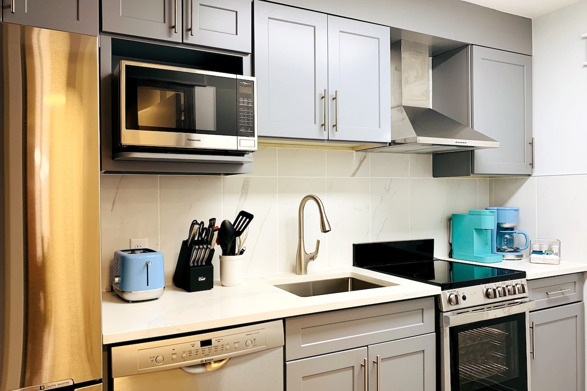 Un estudio encantador con cocina/aire acondicionado/gimnasio/lavadora/secadora