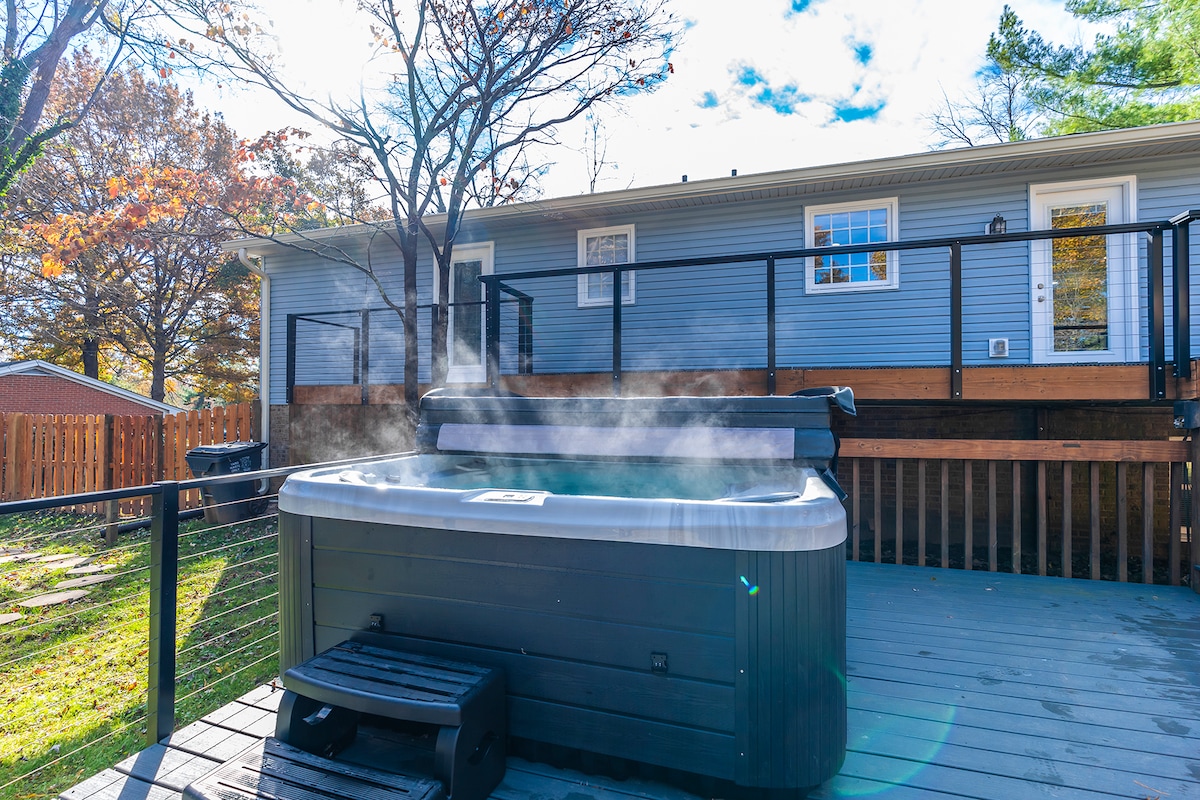 La bañera de hidromasaje está disponible durante todo el año. Perfecto para relajarte y desestresarte durante tu estancia. La piscina está abierta del 1 de mayo al 1 de octubre. Puedes quedarte y ver películas de nuestra colección de DVD o tus aplicaciones de Apple TV favoritas en la pantalla de 110 pulgadas de la sala de teatro. Echa un vistazo a nuestras fotos y lee las descripciones debajo de ellas. Te va a encantar nuestro alojamiento porque estamos cerca del centro de Louisville y Jeffersonville, pero lo suficientemente escondidos para una estancia tranquila y relajante. No se permiten llegadas anticipadas.