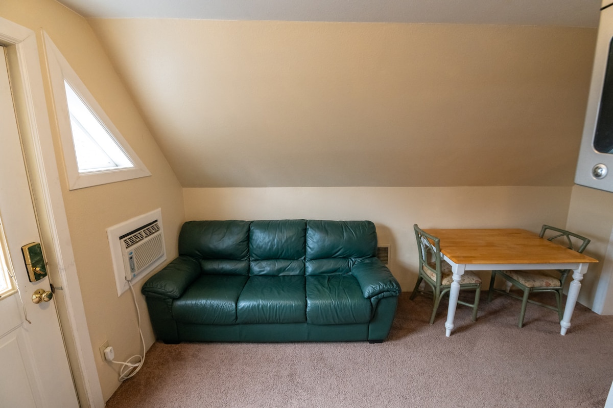 Pintoresco loft privado, situado en el tranquilo y encantador barrio de Klamath Falls, a una hora al sur de Crater Lake. Entrada privada y cama tamaño king para darle la bienvenida. Ubicación céntrica del hospital, la OIT y el centro de la ciudad. Se admiten mascotas, con parque para perros situado a pocas manzanas de distancia en un barrio muy transitable.
