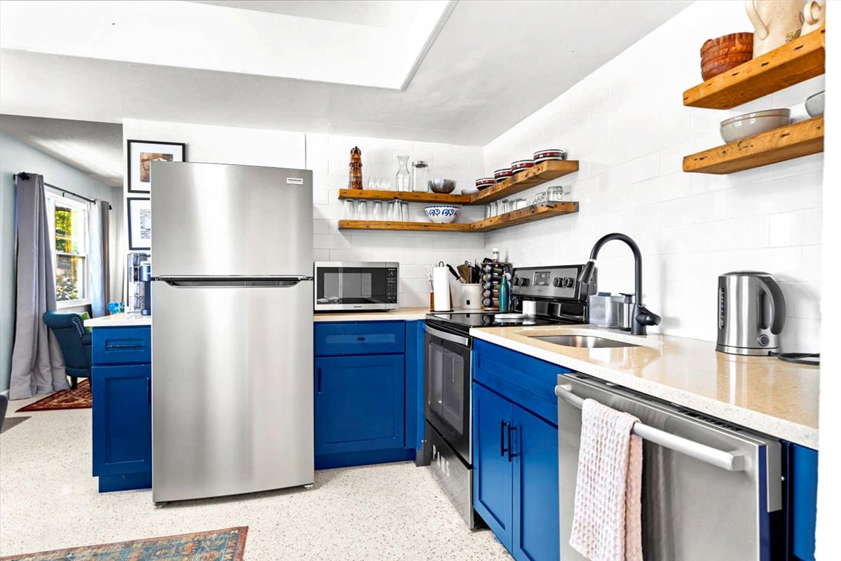 ¡Ven a alojarte en este estudio privado con su propio patio vallado en la parte trasera! Tiene lavadora y secadora compartidas. Cama tamaño queen nueva, sofá cama (individual), parrilla de gas, horno tostador/freidora de aire, microondas, placa caliente para cocinar y nevera completa más unidad de aire acondicionado. Cabezal de ducha tipo lluvia y piedras de río en el suelo de la ducha. Sillas de playa, toallas disponibles. Aparcamiento en la calle en la entrada. El famoso y enorme mercado fresco «Detweilers» está a solo 1,5 millas de distancia.
