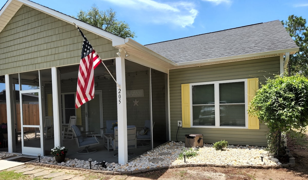 ¡Casa de playa "Just Enough"! Porche delantero protegido