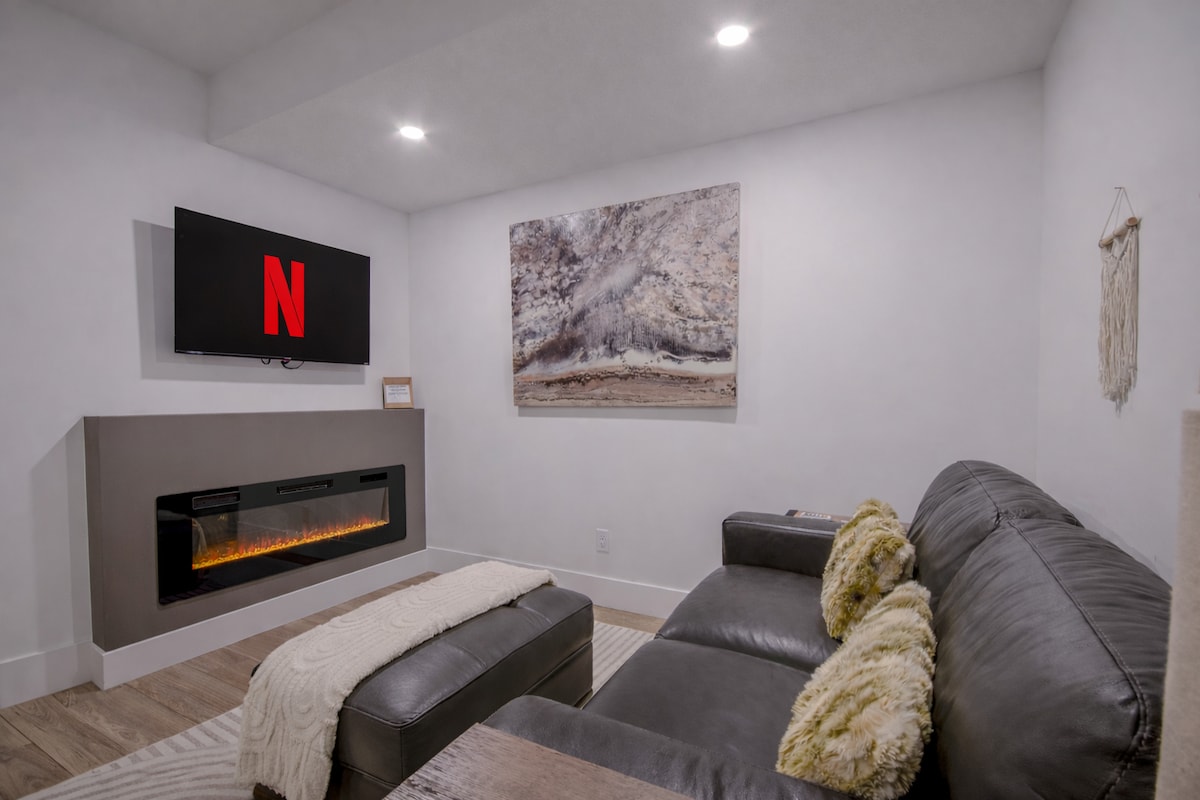¡Lujo de 5 estrellas con aire acondicionado a minutos del centro de la ciudad, a minutos del centro! Disfruta de una suite king, wifi rápido de 1G y aparcamiento gratuito en garaje. Reúnete en la cocina Bosch del chef, transmite películas en televisores gemelos de 55 pulgadas o relájate con la familia junto a la mesa de fuego y la barbacoa del patio trasero. La propiedad cuenta con una cama tamaño king, 2 camas tamaño queen y 2 camas individuales, ¡lo que la hace ideal para grupos grandes! Bar Nespresso Patio con luces Edison Lavandería en la suite Camina a las tiendas de Marda Loop, o conduce 3 minutos a la diversión de la 17th Ave. ¡Vino junto al fuego, por nuestra cuenta!