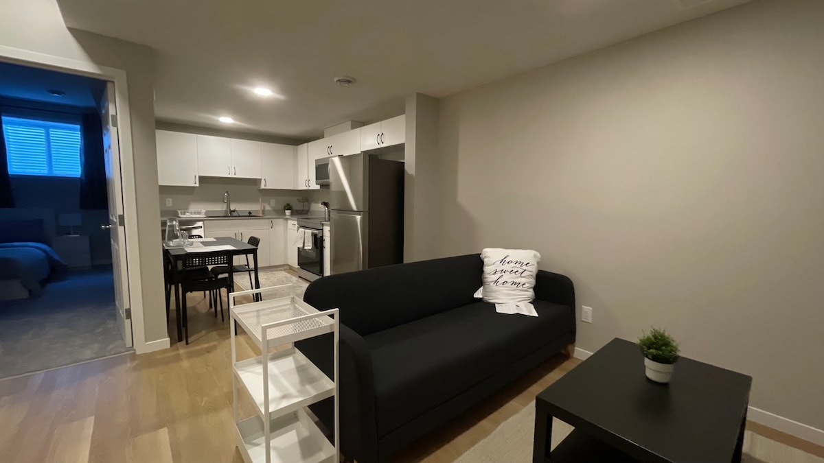 Ubicada en el tranquilo y maduro barrio de Pleasant View, esta suite independiente y elegante en el sótano contiene dos dormitorios (cama tamaño king y cama tamaño queen), una cocina completa, una sala de estar/comedor y un baño completo. También está convenientemente ubicado cerca del LRT y de las carreteras arteriales que conducen al centro y a otras partes de la ciudad. ★ Limpieza y gestión profesional ★ Cerca de restaurantes, tiendas de comestibles y otros servicios ★ Lavadora y secadora ★ Cocina bien surtida ★ A 15 minutos del centro (Rogers Place)